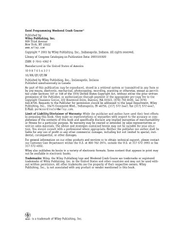 Trademarks: Wiley, the Wiley Publishing logo and Weekend Crash Course are trademarks or registered